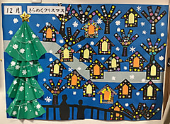 11月のおけいこ作品の紹介です。 ご利用者様の12月の貼り絵の共同作品「きらめく...