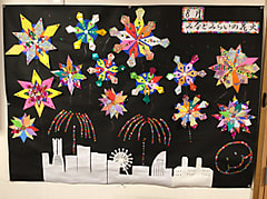 7月のおけいこ作品の紹介です。 ご利用者様の8月の貼り絵の共同作品「みなとみらい...